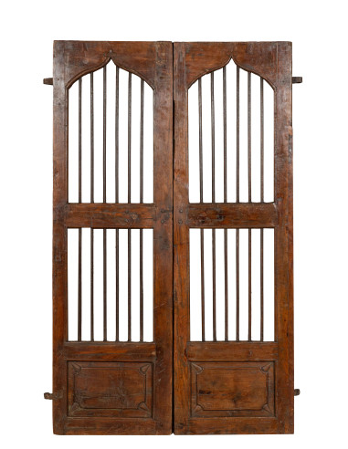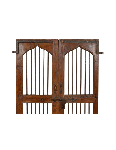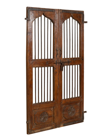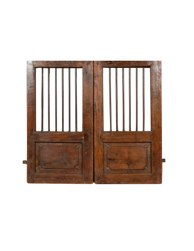 Интериорна или екстериорна стара средновековна плъзгаща се врата от масивно дърво и желязо