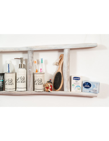 Дървено стълбище с размери L28xPR7xH100 cm. То точно възпроизвежда както по естетика, така и по конструкция старите стълби, като страните са изработени от един дънер на дърво, разрязан наполовина. Много универсална мебел, както и функционален инструмент за ежедневието.