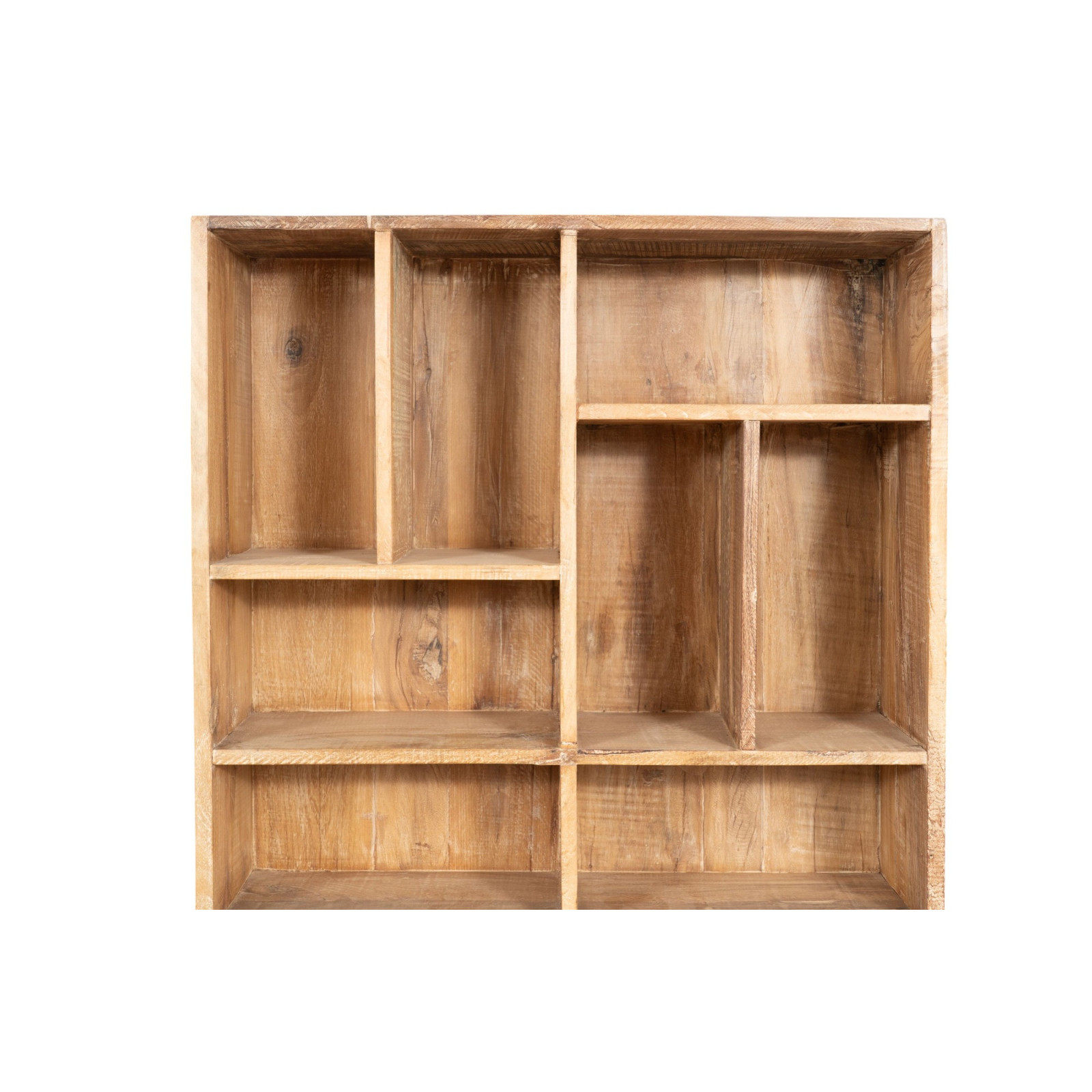 Книжна лавица, изработена от масивно рециклирано дърво с размери ширина 90 см, дълбочина 30 см, височина 180 см. Ръчно боядисана с естествени бои, многобройните нюанси правят всяка мебел уникална. Здрава и функционална, тя е идеална за любителите на антични мебели и дърво.