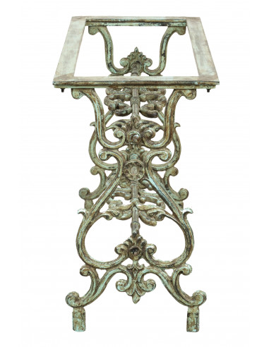 Чугунената основа, носеща конструкция със значителни размери, може да поддържа големи, дори много тежки каменни и мраморни плотове. Основата е точно копие на работна маса от английска стъкларска фабрика, затворена през 1860 г.