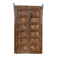 Старинна врата от масивно тиково дърво с размери 123 см дължина, 9 см дълбочина и 213 см височина. Тази врата произхожда от разрушаването и реставрацията на важни стари сгради. Фино реставрирана и обработена за външна употреба, всяка врата е част от истински и уникален антиквариат. Всички измервания се отнасят за максималните габаритни размери на изделието.
