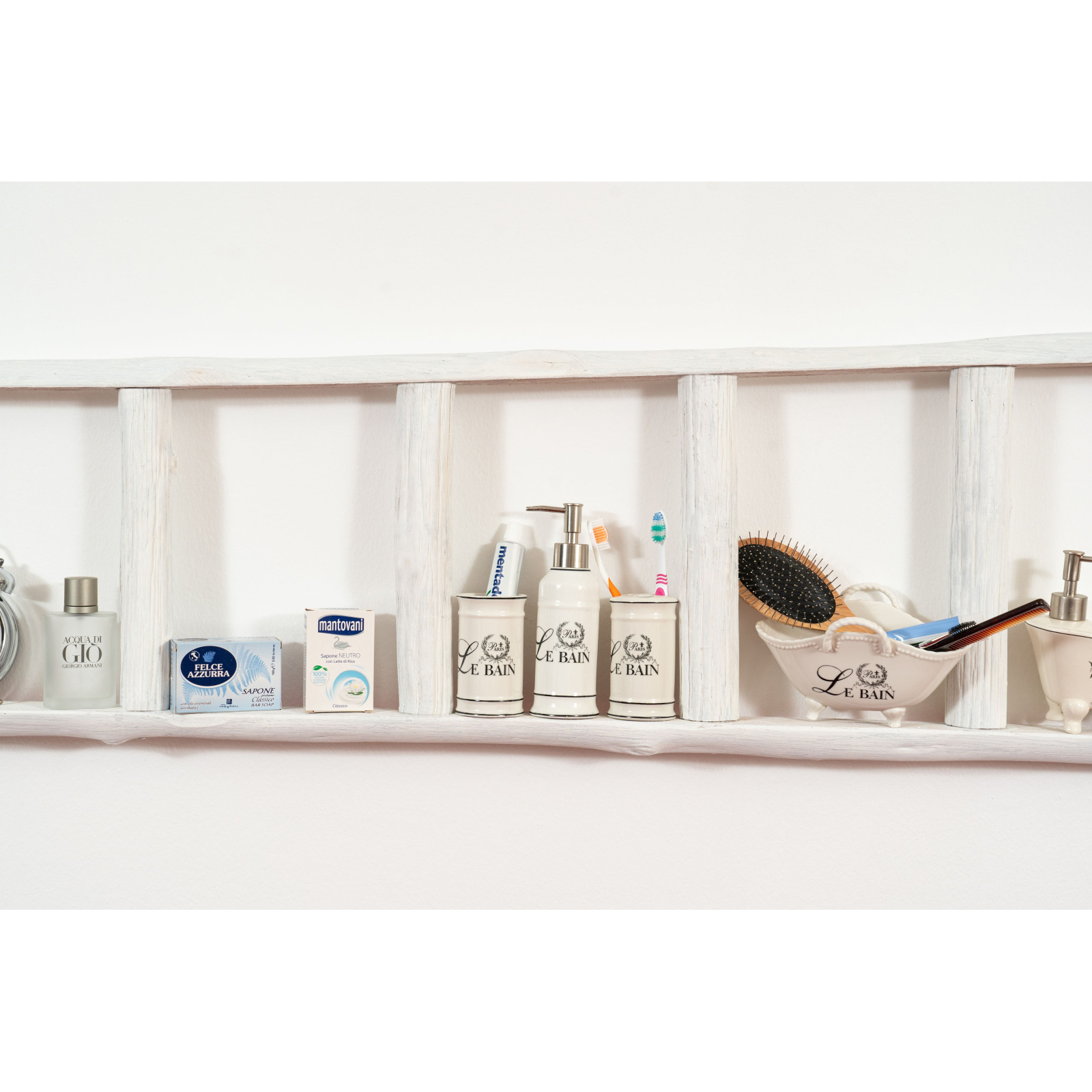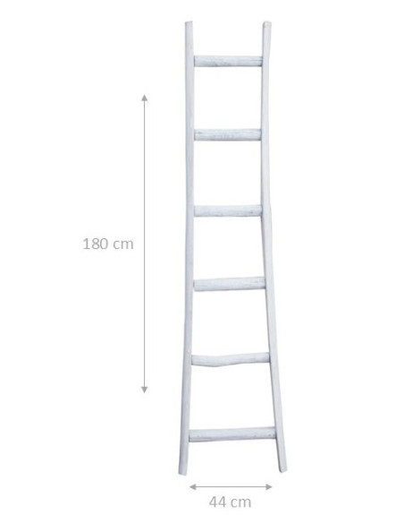 Дървено стълбище с размери L44xPR8xH180 cm. То точно възпроизвежда както по естетика, така и по конструкция старите стълби, като страните са изработени от един дънер на дърво, разрязан наполовина. Много универсална мебел, както и функционален инструмент за ежедневието. Тъй като са ръчно изработени, всяко стълбище може да се различава леко едно от друго по отношение на покритието.