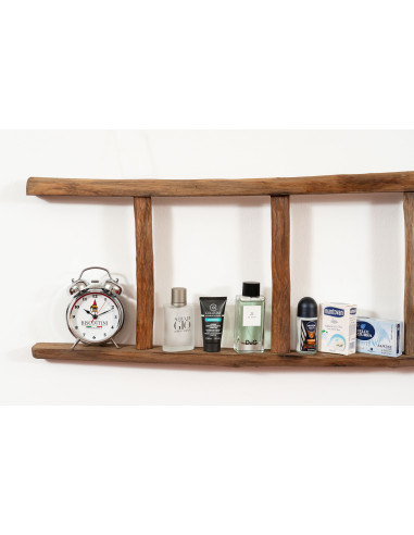 Дървено стълбище с размери 44x8x180 cm. Тя точно възпроизвежда старите стълби както по отношение на естетиката, така и на конструкцията, като страните са направени от един дънер на дърво, разрязан наполовина. Много гъвкава мебел, както и функционален инструмент за ежедневието. Тъй като са ръчно изработени, всяко стълбище може да се различава леко по отношение на покритието.