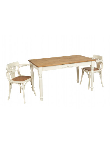 Стол Thonet от масивна дървесина и ратанова седалка с бяло покритие