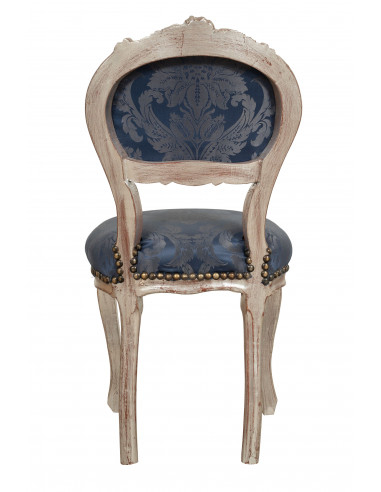 Френско кресло в стил Луи XVI от масивна букова дървесина, сребристо и синьо покритие