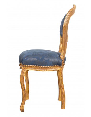 Френско кресло в стил Луи XVI от масивно антично злато и синя букова дървесина
