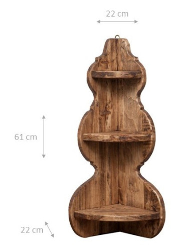 Ъглов стенен рафт от масивно липово дърво, естествено покритие L22xPR22xH61 см. Произведено в Италия