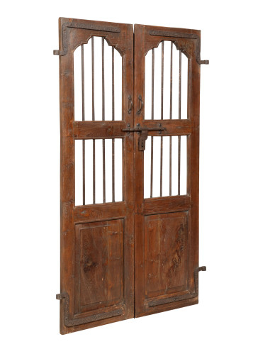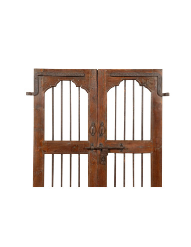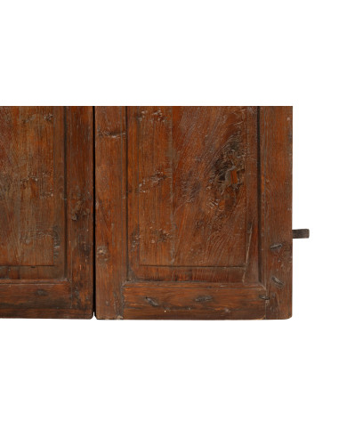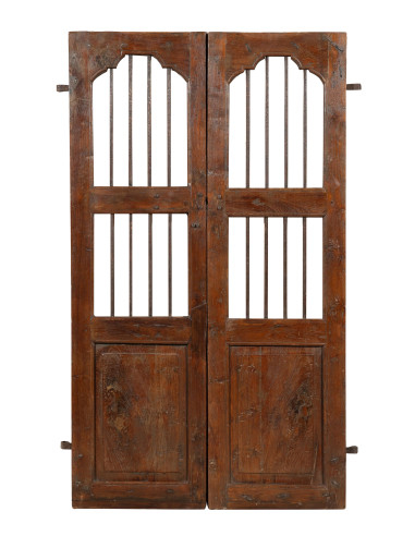 Старинна врата от масивно тиково дърво с размери дължина 114 см, дълбочина 6 см, височина 170 см. Тази врата произхожда от разрушаването и реставрацията на важни стари сгради. Фино реставрирана и обработена за външна употреба, всяка врата е част от истински и уникален антиквариат. Всички измервания се отнасят за максималните габаритни размери на изделието.