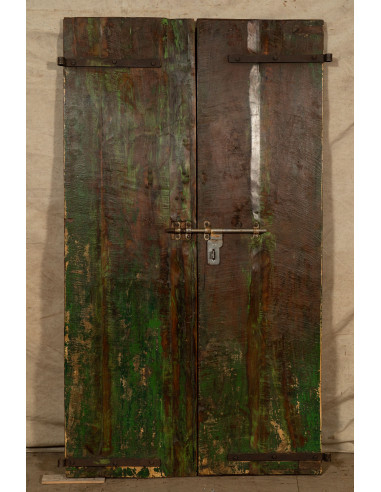 Интериорна или екстериорна стара средновековна плъзгаща се врата от масивно дърво и желязо