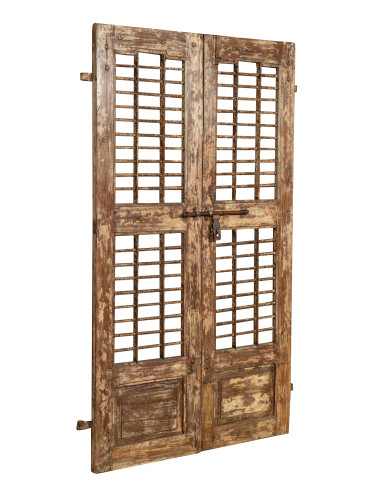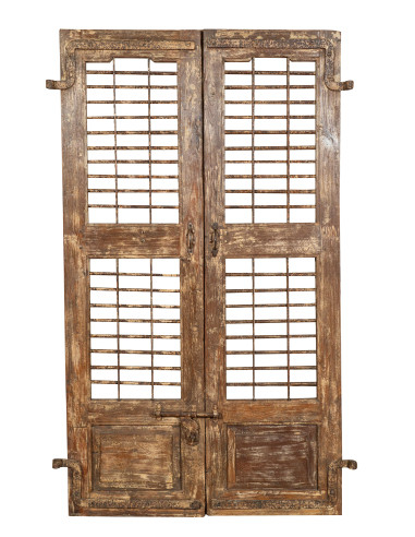 Старинна врата от масивно тиково дърво с размери 117 см дължина, 7 см дълбочина и 183 см височина. Тази врата произхожда от разрушаването и реставрацията на важни стари сгради. Фино реставрирана и обработена за външна употреба, всяка врата е част от истински и уникален антиквариат. Всички измервания се отнасят за максималните габаритни размери на изделието.