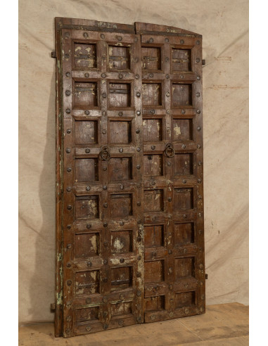 Интериорна или екстериорна стара средновековна плъзгаща се врата от масивно дърво и желязо