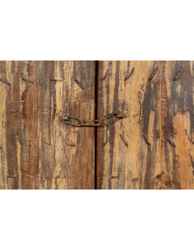 Интериорна или екстериорна стара средновековна плъзгаща се врата от масивно дърво и желязо