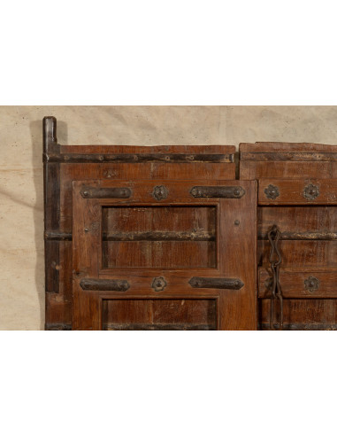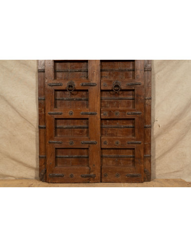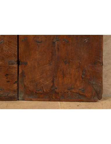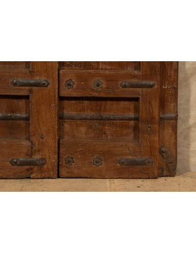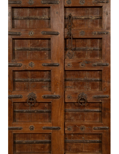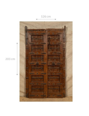 Старинна врата от масивно тиково дърво с размери 126 см дължина, 11 см дълбочина и 203 см височина. Тази врата произхожда от разрушаването и реставрацията на важни стари сгради. Фино реставрирана и обработена за външна употреба, всяка врата е част от истински и уникален антиквариат. Всички измервания се отнасят за максималните габаритни размери на изделието.