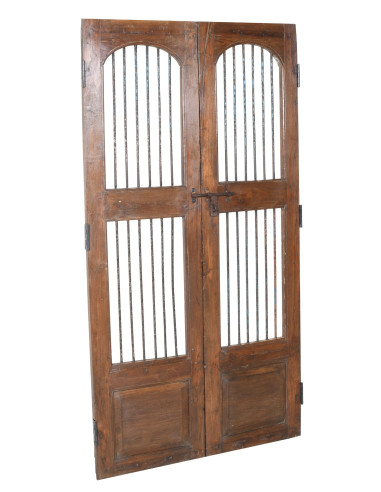 Старинна врата/порта от масивно тиково дърво с размери дължина 99 см, дълбочина 3 см, височина 183 см. Тази врата е получена от разрушени и възстановени старинни и важни сгради. Фино реставрирана и обработена за външна употреба, всяка врата е истинска и уникална антикварна ценност. Всички размери се отнасят до максималните размери на артикула.