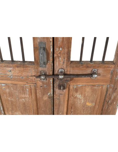 Старинна врата/порта от масивно тиково дърво с размери дължина 90 см, дълбочина 4 см, височина 184 см. Тази врата е получена от разрушени и възстановени старинни и важни сгради. Фино реставрирана и обработена за външна употреба, всяка врата е истинска и уникална антикварна ценност. Всички размери се отнасят до максималните размери на артикула.