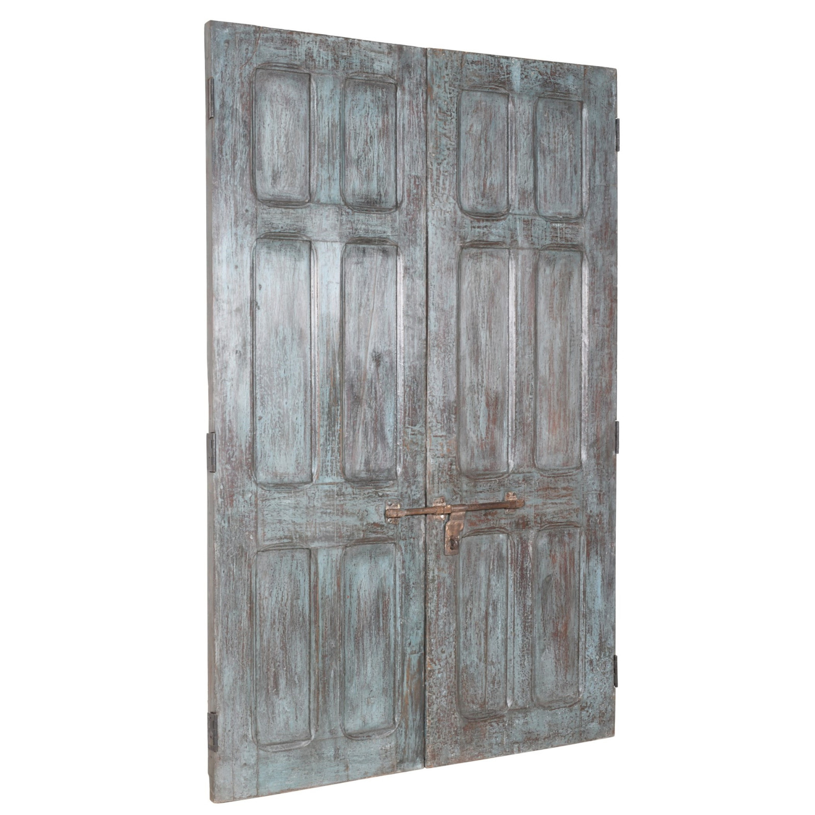 Старинна врата/порта от масивно тиково дърво с размери дължина 132 см, дълбочина 5 см, височина 208 см. Тази врата е получена от разрушени и възстановени старинни и важни сгради. Фино реставрирана и обработена за външна употреба, всяка врата е истинска и уникална антикварна ценност. Всички размери се отнасят до максималните размери на артикула.