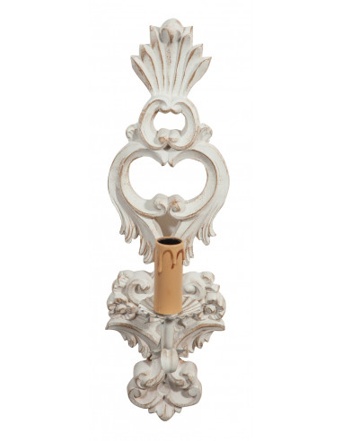 Изтъркана стенна лампа от дърво и желязо с антично бяло покритие Произведено в Италия