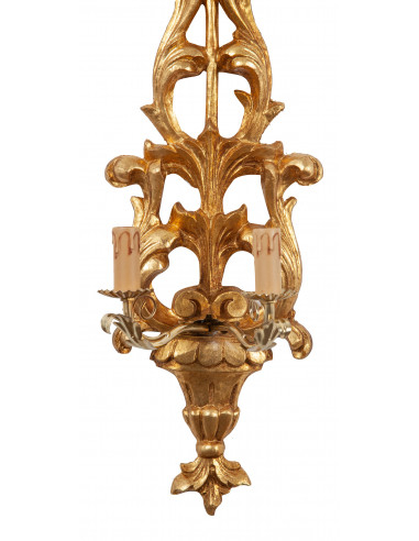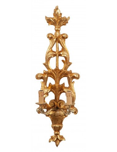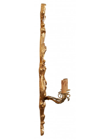 Изтъркана стенна лампа от дърво и желязо с антично покритие от златни листове Произведено в Италия