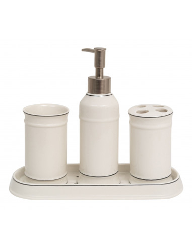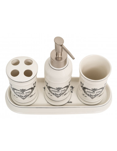 Комплект за баня "Прахов сапун" 4 броя в декориран бял порцелан L25xPR10xH21 cm
