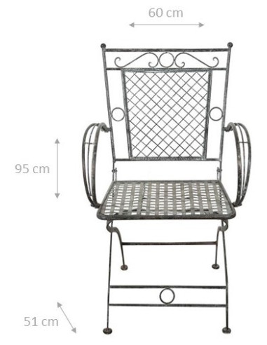Стол с кресло с подлакътници от ковано желязо, антично покритие от ръжда 60x51x96 cm