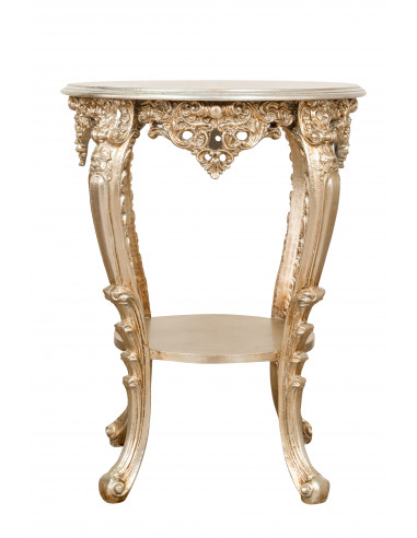 КРЪГЛА МАСА PANCHETTO С ПОКРИТИЕ ОТ АНТИЧНО СРЕБЪРНО ЛИСТО, ПРОИЗВЕДЕНА В ИТАЛИЯ