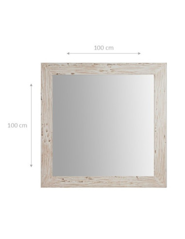 Квадратно огледало за стена от масивно варово дърво с антично кремово покритие L100xPR3xH100 см. Произведено в Италия