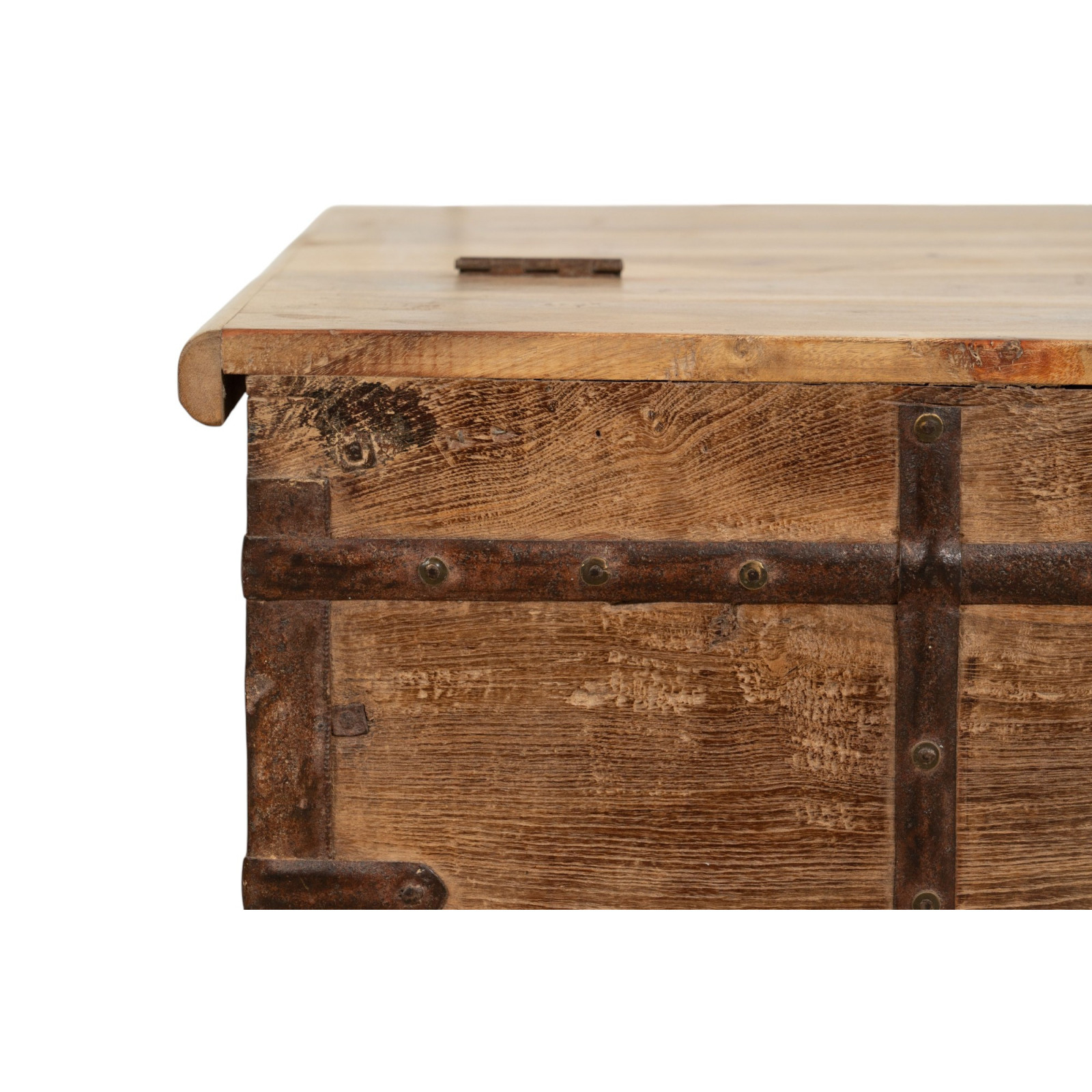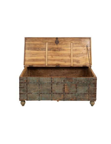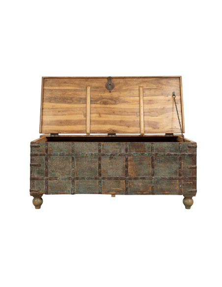 Фино изработен дървен сандък с размери 102 см дължина, 59 см дълбочина и 46 см височина. Този оригинален дървен сандък има капак, украсен с мариновано покритие. Елегантна, компактна, солидна и функционална, резултатът е мебел с елегантен ретро вид, която може да се използва и за украса на най-модерното пространство в дома ви. Може да се използва и като багажник, пейка, контейнер, сандък. Всички измервания се отнасят за максималните габаритни размери на изделието.