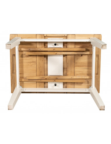 Държава разтегателна маса, изработена от масивна варово дърво с антична бяла структура и естествен плот. Произведено в Италия