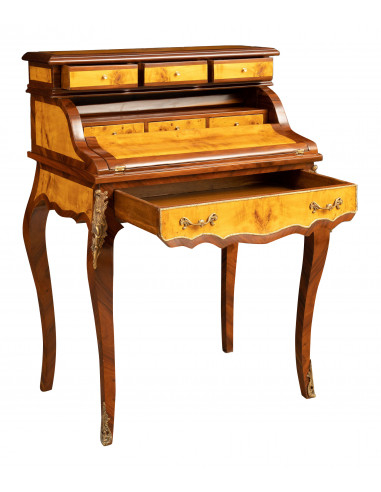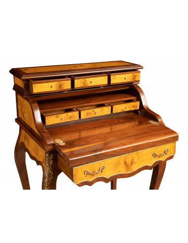 Секретарско бюро от фурнировано орехово дърво, обогатено с конкретни инкрустации, изцяло ръчно изработени
