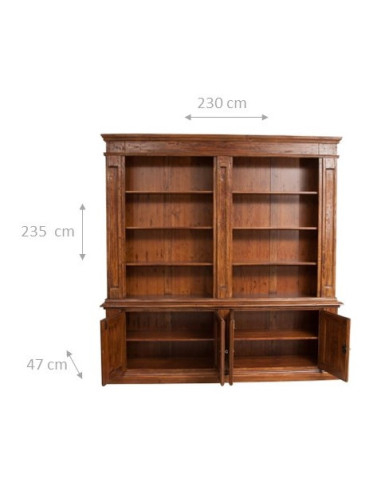 Селска библиотека от масив от орех от масивна вар L230xPR47xH235 cm. Произведено в Италия