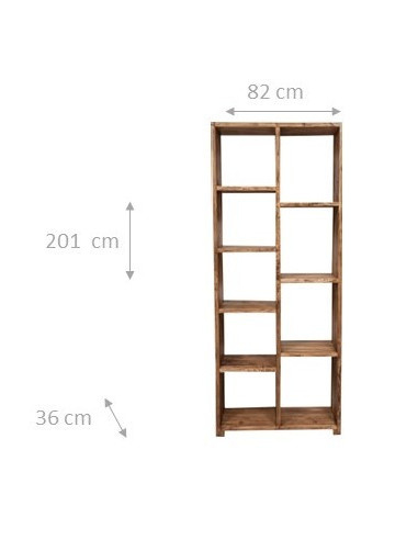 Шкаф за книги в твърдо варово дърво естествено покритие L82xPR36xH201 cm. Произведено в Италия