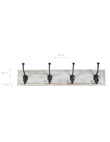 Стенен стелаж от палто от масивно дърво и ръчно ковано желязо с антично бяло покритие 60x12x16 cm