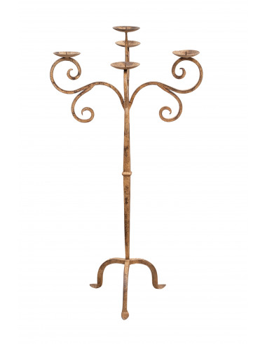 Стойка за свещник от ковано желязо, ръчно изработена в цвят античен крем L49XPR49XH94 cm