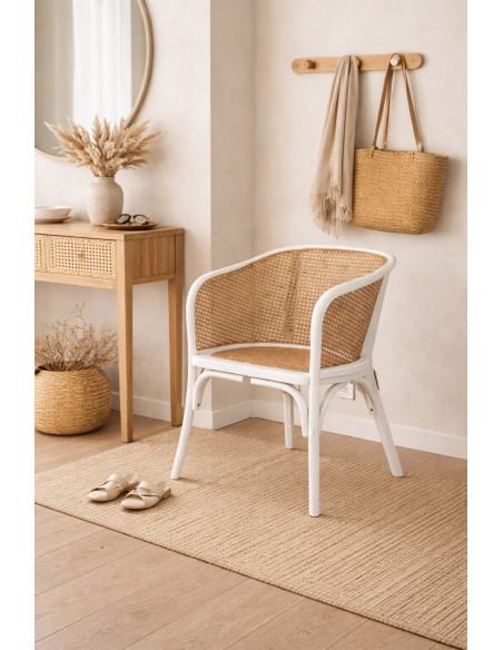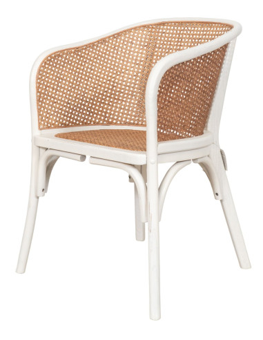 Стол от масивно дърво и седалка от ратан с бял античен финиш