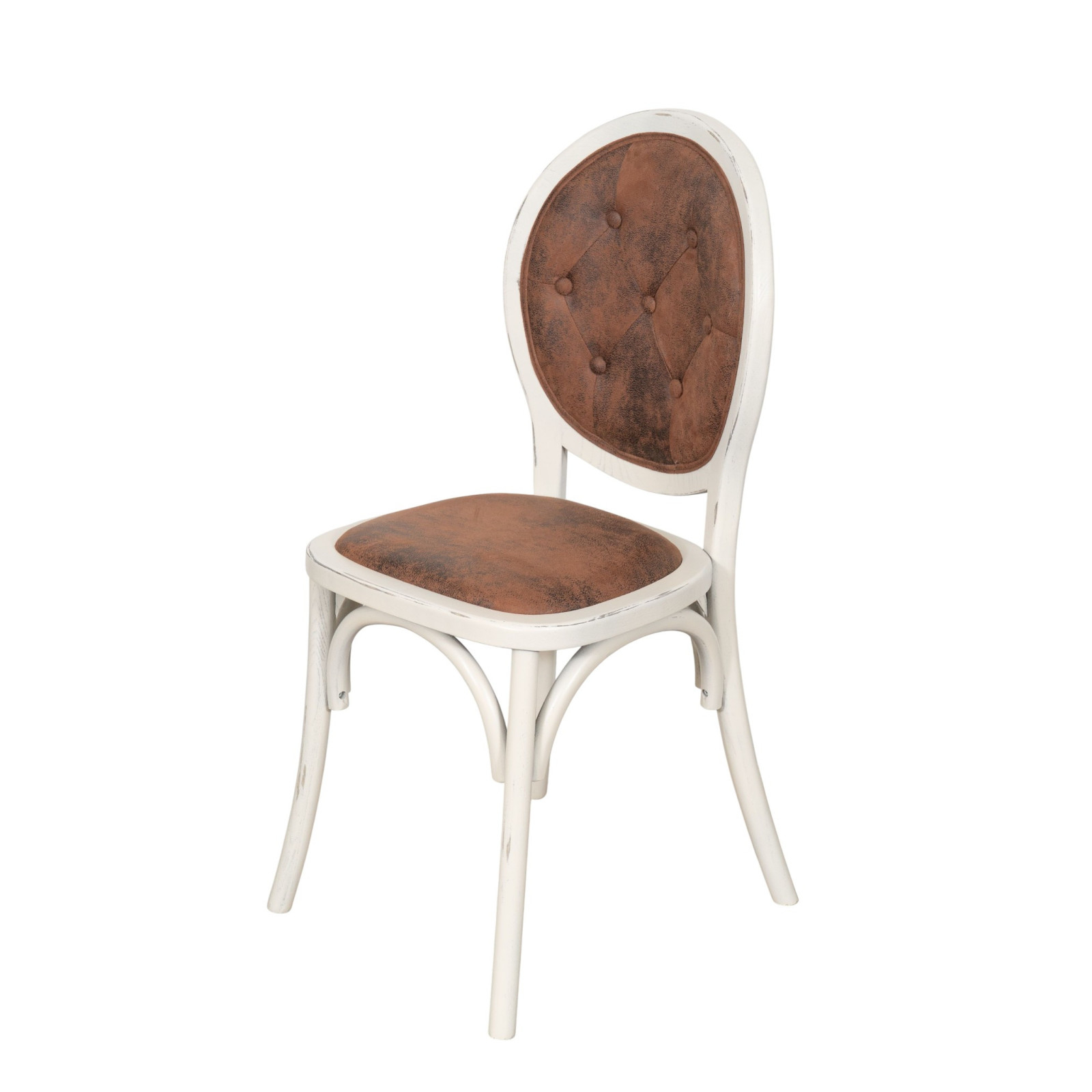 Стол от масивно дърво и тапицирана седалка с антично бяло покритие