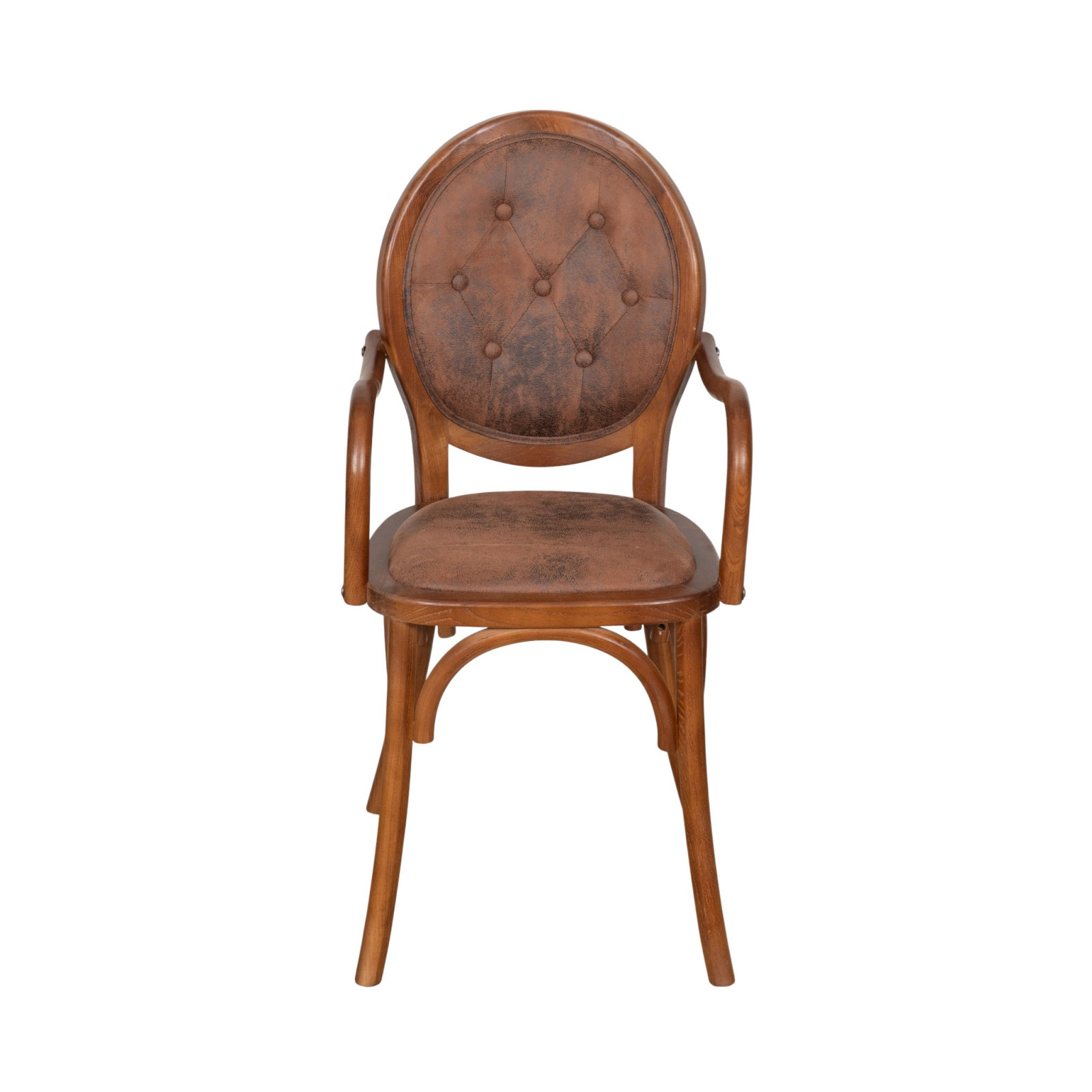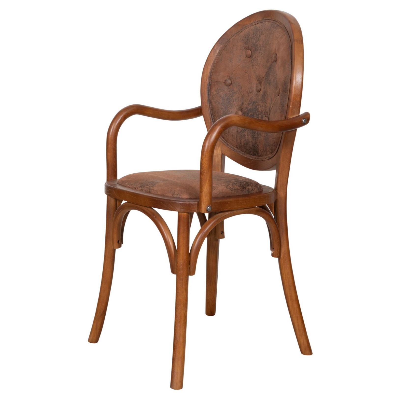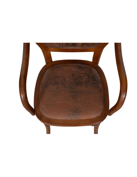 Стол от масивно дърво с подлакътници и подплатена седалка в тъмен орехов цвят