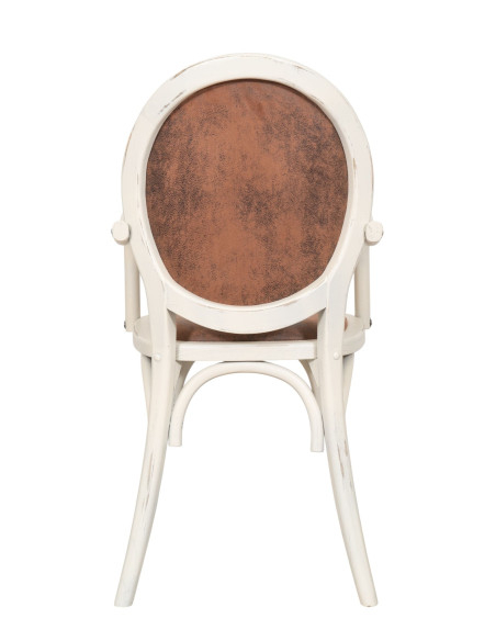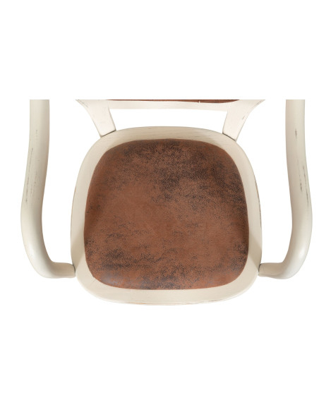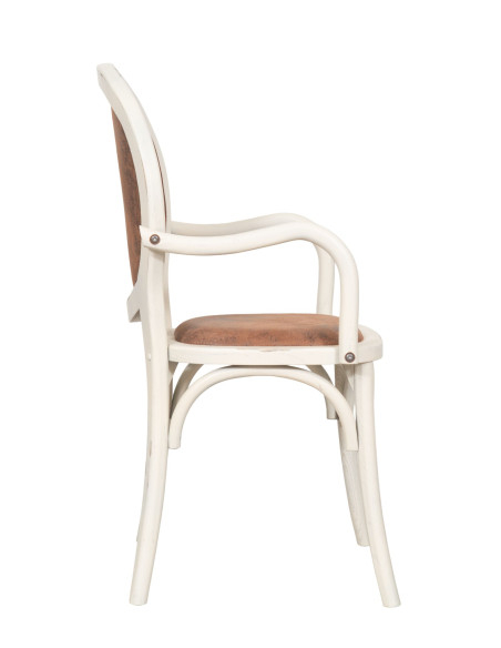 Стол с подлакътници от масивна дървесина и подплатена седалка в антично бяло покритие