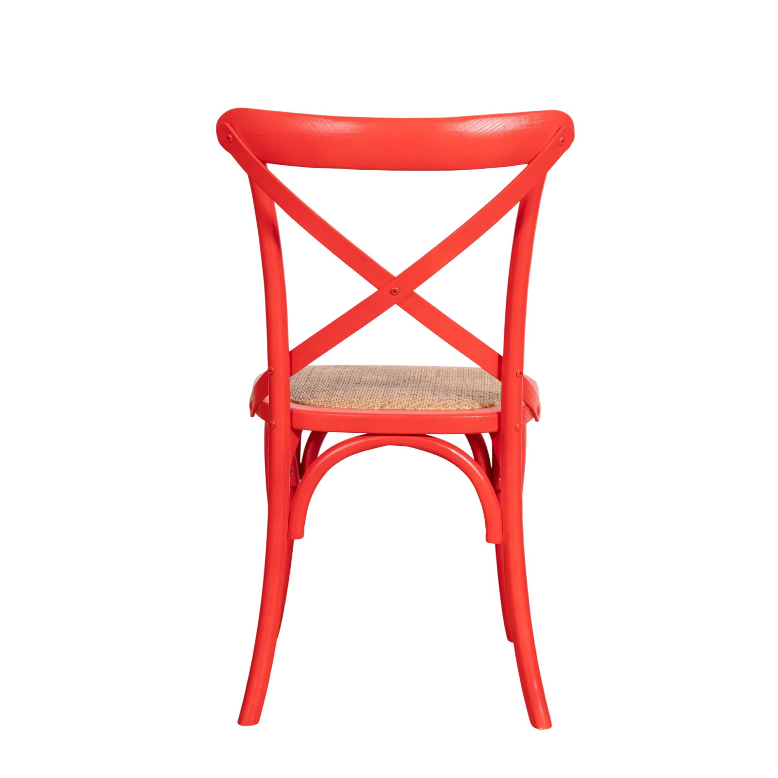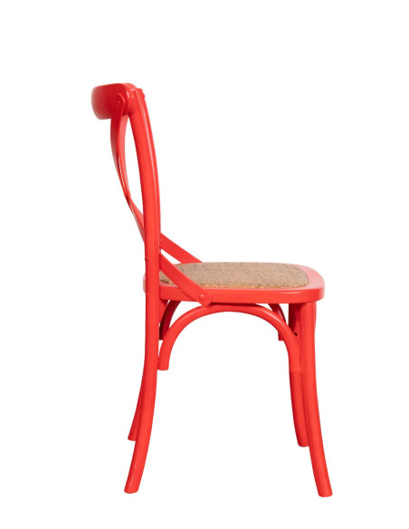 Стол Thonet Cross от масивно дърво и седалка от ратан с червено покритие