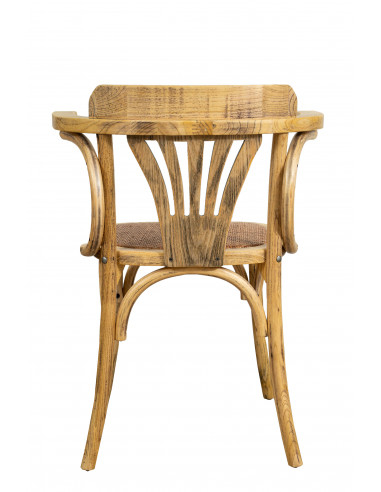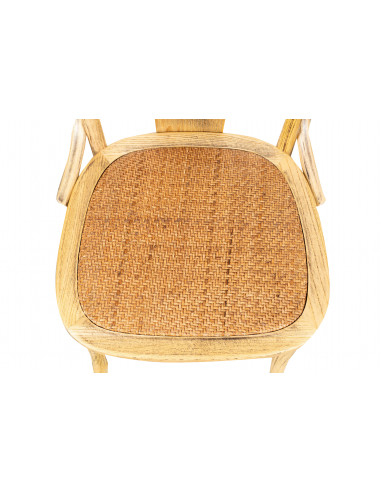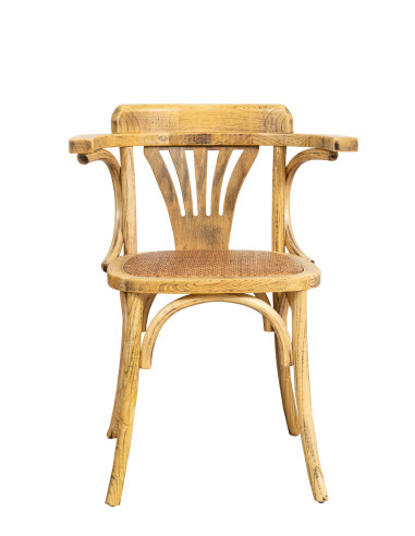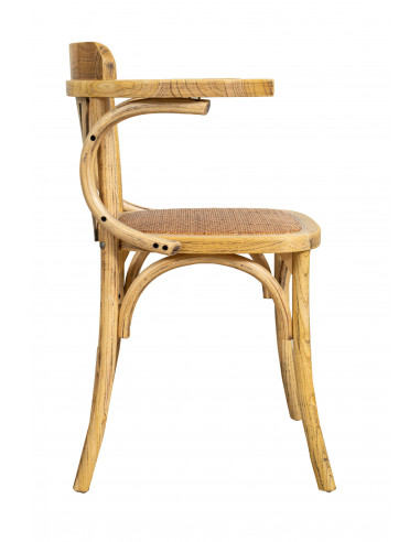 Стол Thonet с подлакътници с масивно дъбово покритие и седалка от ратан