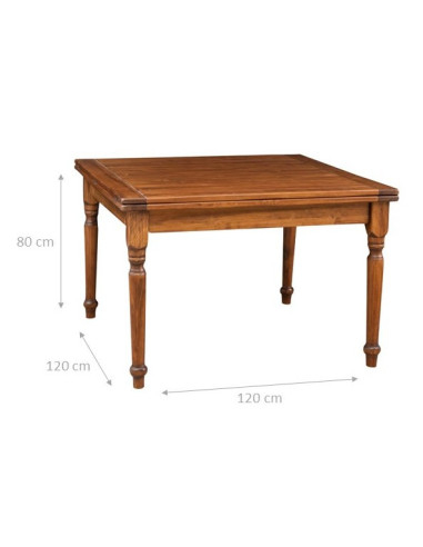 Държава разтегателна сгъваема маса в плътно варово дърво покритие 120x120x80 cm. Произведено в Италия