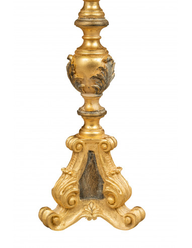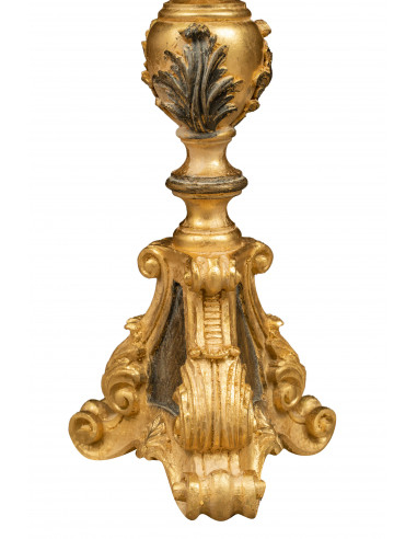 ДЪРВЕН КАНДЛЕСТИК С АНТИКВИРАН И ЧЕРЕН ЗЛАТЕН ЛИСТОВ ФИШЪЛ, ИЗВЪРШЕН В ИТАЛИЯ