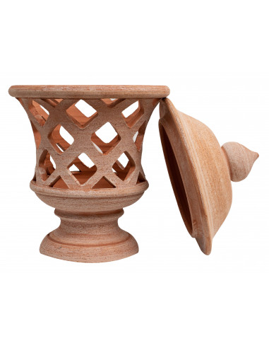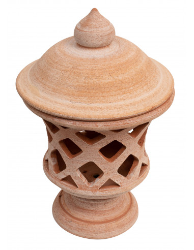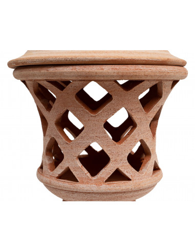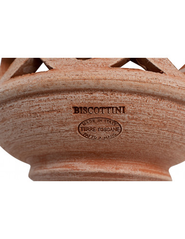 Фенер, изработен ръчно от тосканска глина, с размери диаметър 35 см, височина 55 см. Изработката и изпичането следват старите тоскански традиции. Качеството на глината и системата на изпичане правят фенера много устойчив на студ. Изработката, изцяло ръчна, прави всеки артикул уникален. За любителите на интериора в стил кънтри, шаби шик и за тези, които обичат да обзавеждат дома си в рустик стил, Biscottini предлага широка гама от артикули за интериорен и екстериорен дизайн, незаменими за обзавеждането на всякакъв тип помещения и пространства.