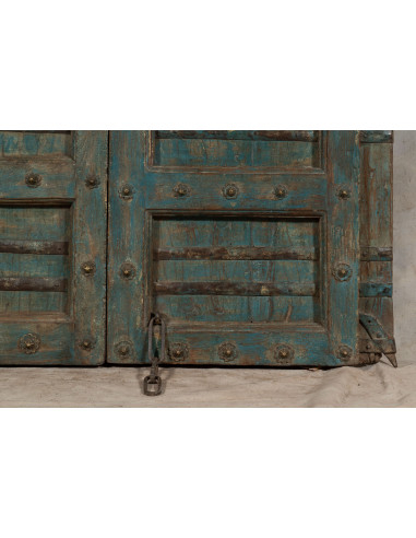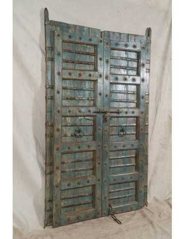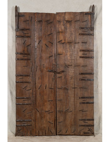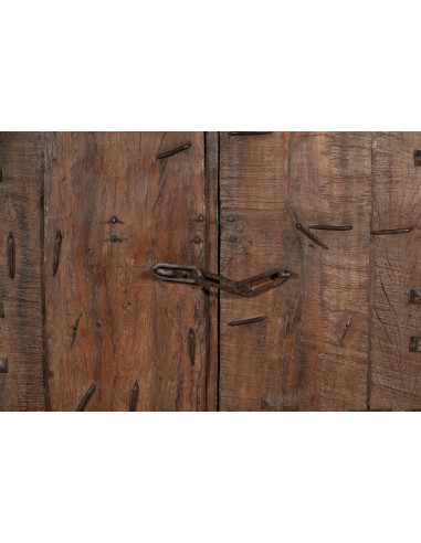Врата на вратата от масивно дърво и желязо отвътре или отвън стара и древна средновековна