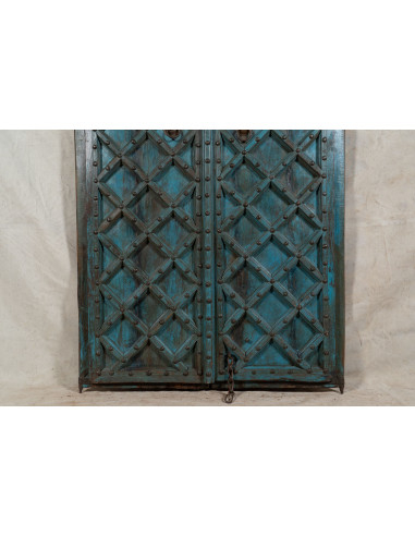 Врата на вратата от масивно дърво и желязо отвътре или отвън стара и древна средновековна