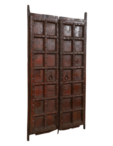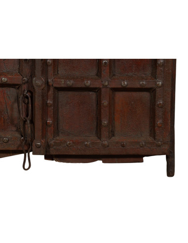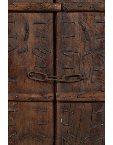 Врата на вратата от масивно дърво и желязо отвътре или отвън стара и древна средновековна