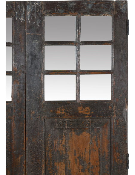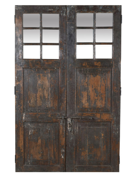 Врата от масивно дърво и желязо за вътрешна или външна употреба, стара и антична средновековна, със стъкло