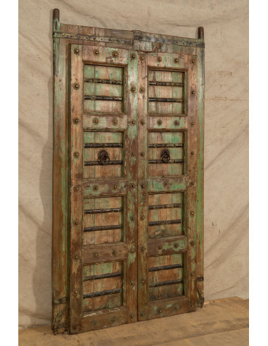 Alte mittelalterliche Schiebetür aus Massivholz und Eisen innen oder außen