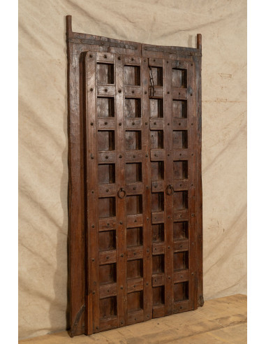 Massive antike Tür/Tor aus Teakholz mit den Maßen 130 cm Länge, 11 cm Tiefe, 209 cm Höhe. Diese Tür stammt aus dem Abriss und der Restaurierung von wichtigen alten Gebäuden. Fein restauriert und für die Verwendung im Freien behandelt, ist jede Tür ein Stück echte und einzigartige Antiquitäten. Alle Maße beziehen sich auf die maximalen Gesamtabmessungen des Artikels.