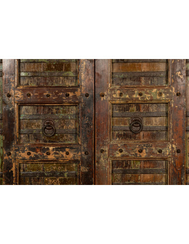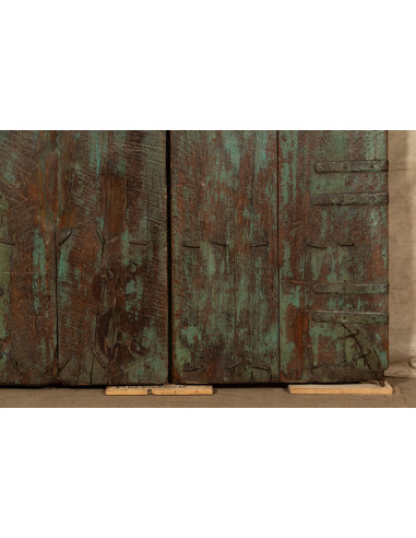 Alte mittelalterliche Schiebetür aus Massivholz und Eisen innen oder außen