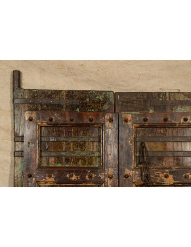 Massive antike Tür/Tor aus Teakholz mit den Maßen 112 cm Länge, 12 cm Tiefe und 215 cm Höhe. Diese Tür stammt aus dem Abriss und der Restaurierung von bedeutenden alten Gebäuden. Fein restauriert und für den Außenbereich behandelt, ist jede Tür ein Stück echte und einzigartige Antiquitäten. Alle Maße beziehen sich auf die maximalen Gesamtabmessungen des Artikels.